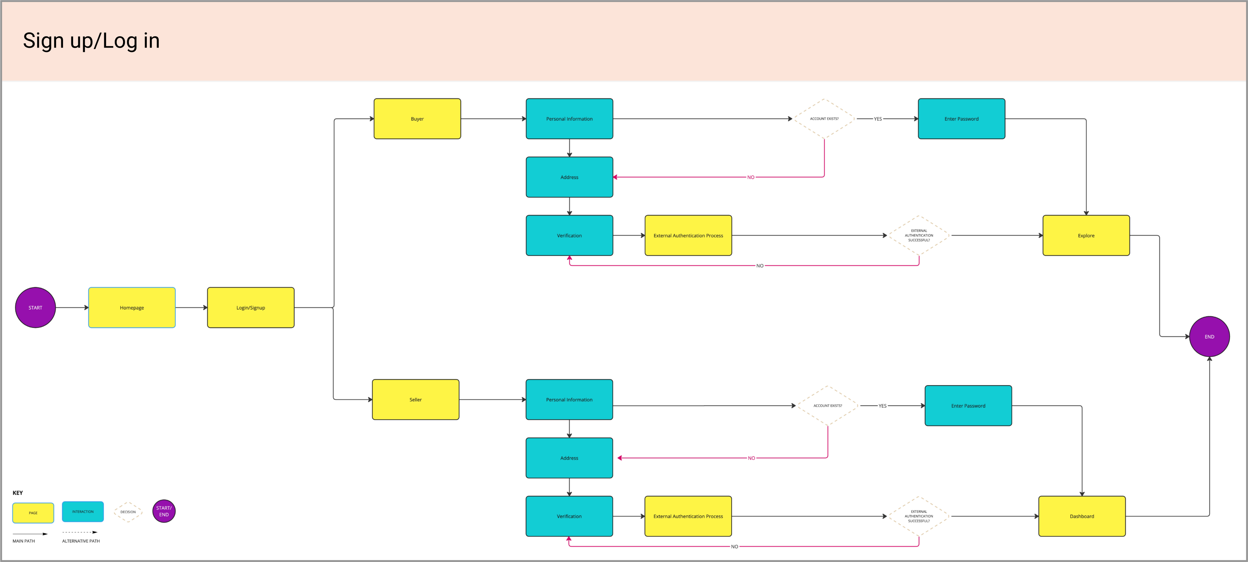 For each flow, I focused on a single, representative use case to ensure all critical steps and edge cases were considered. For both the buyer and seller journeys, I used a landscape painting as the reference artifact.