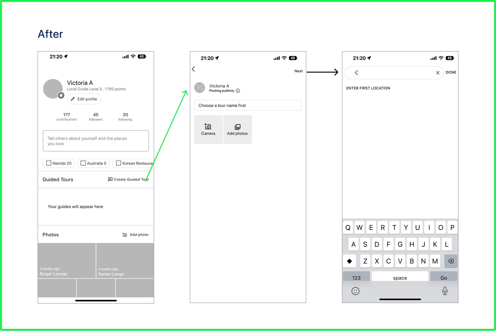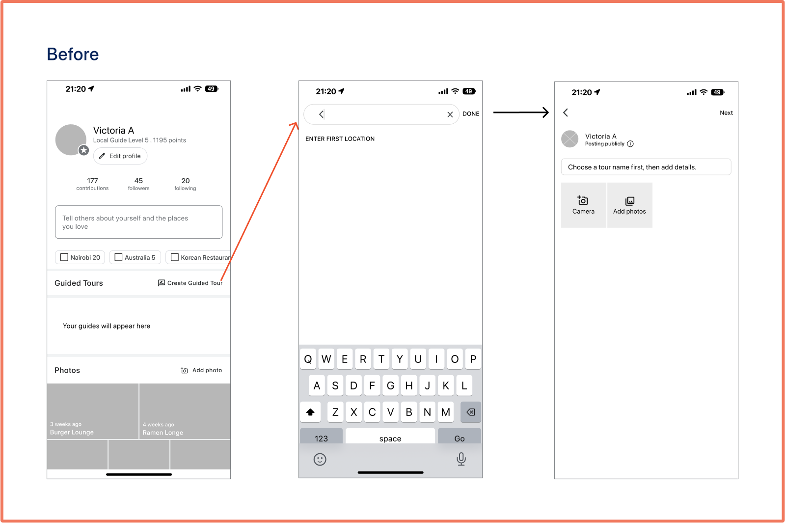 I decided to change the flow to ensure that it made more sense to the user by starting with 'Choosing a Name for the tour'