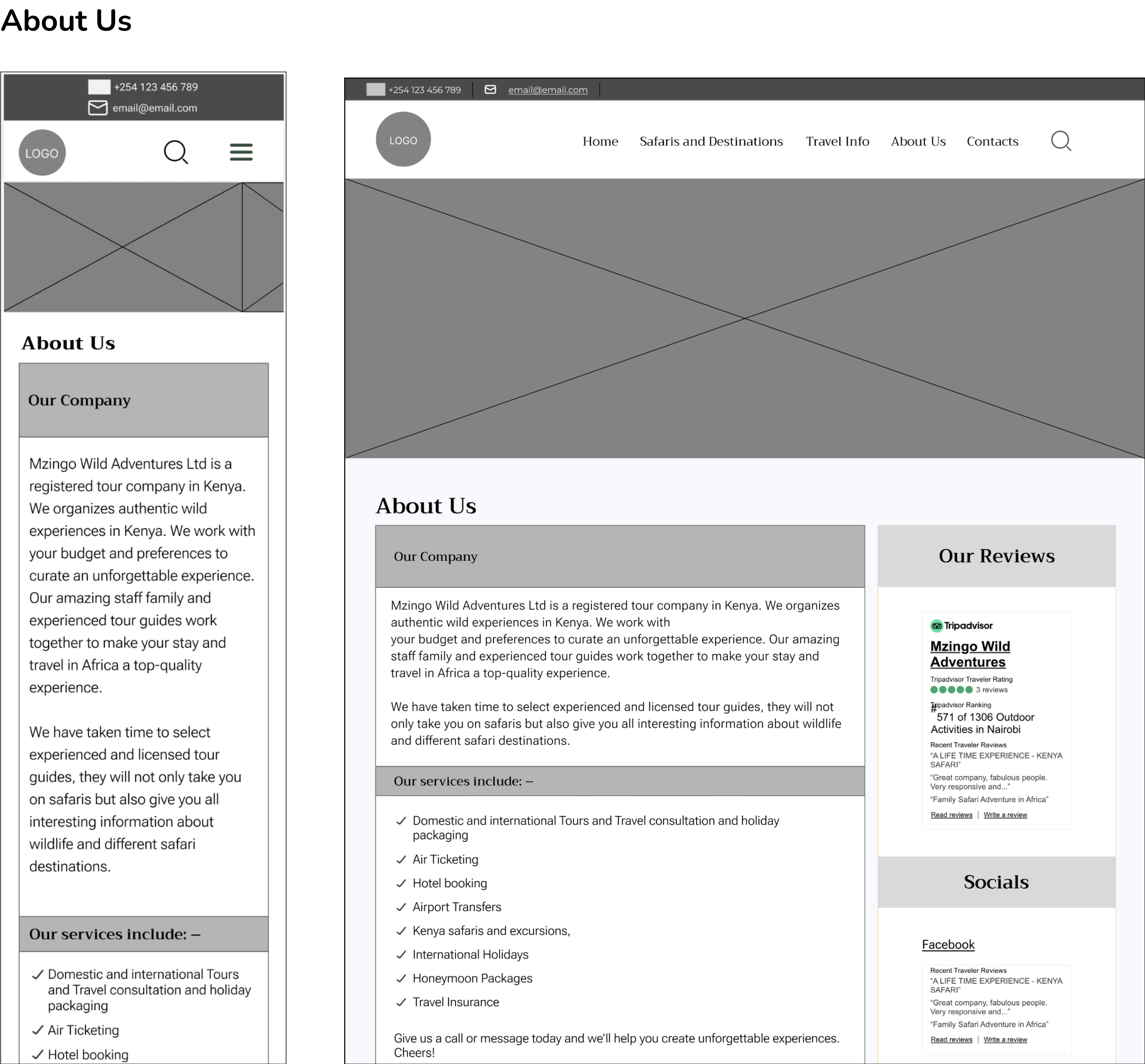 While awaiting feedback, I documented a style tile and core UI components to support visual consistency and scalability. However, during stakeholder review, Mzingo Adventures expressed a preference to retain their existing corporate identity and postpone visual branding changes at this stage.