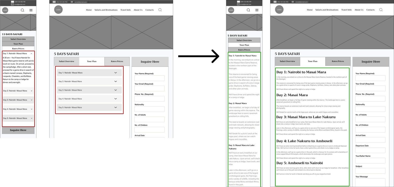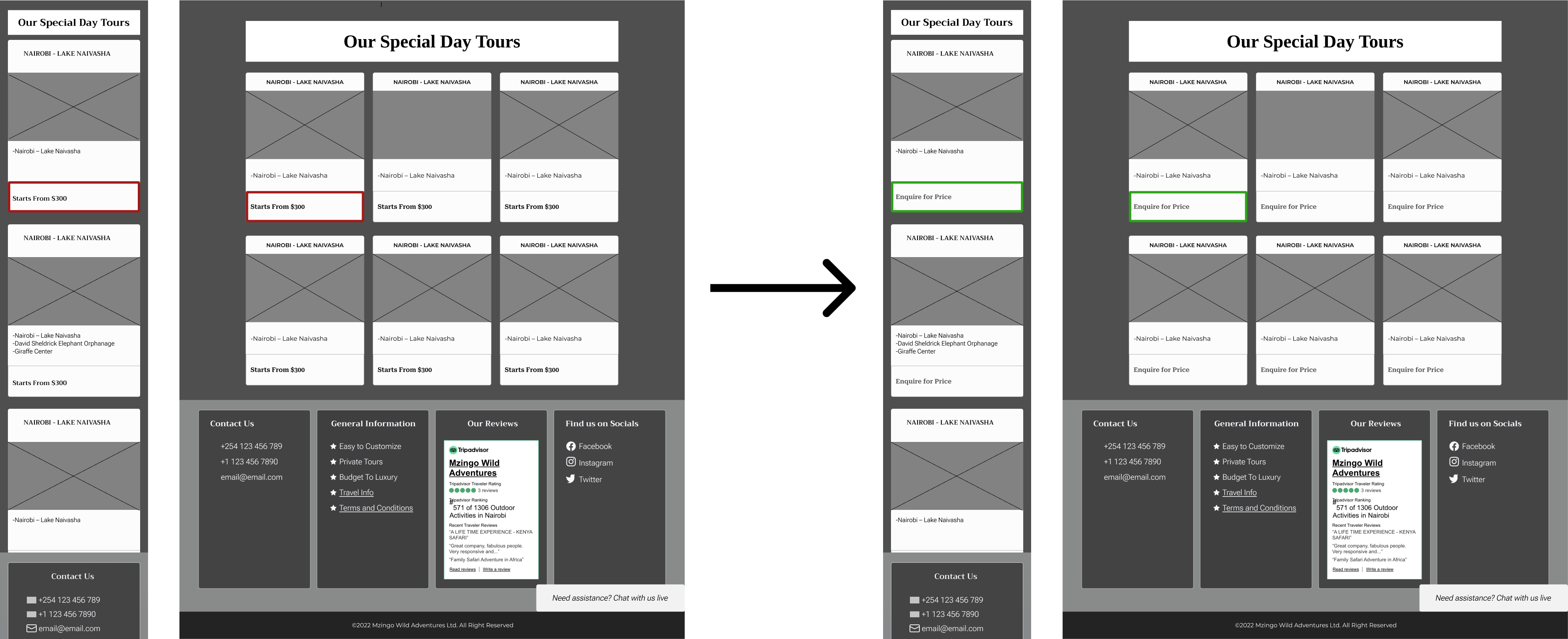 Another insight from usability testing revealed that displaying the estimated safari price prominently at the front of the image disrupted the natural information flow. Users tended to anchor on price before understanding what the safari experience included, which risked overshadowing important contextual details such as activities, itinerary highlights, and value.